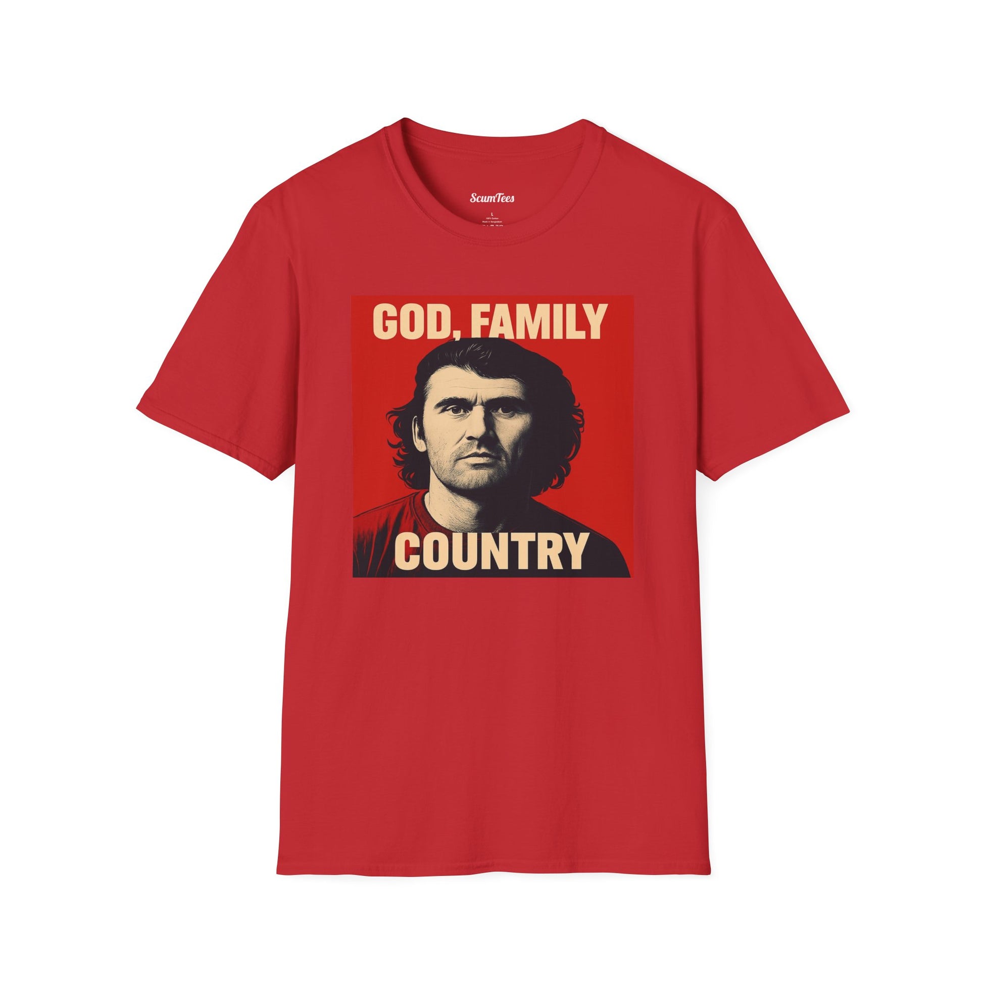 God, Family, Country Unisex Softstyle T-Shirt for Patriotic Wear, Family Gatherings, Holidays, Gifts, Casual Outfits